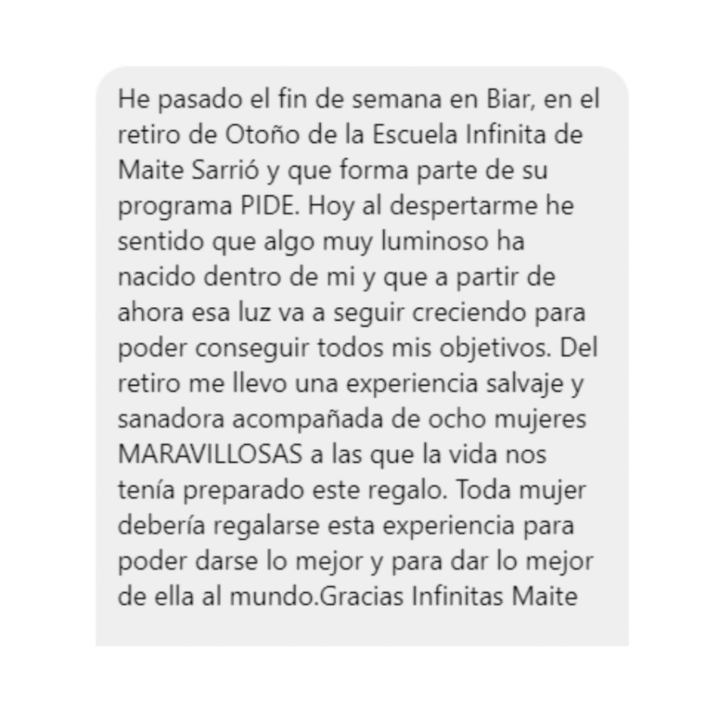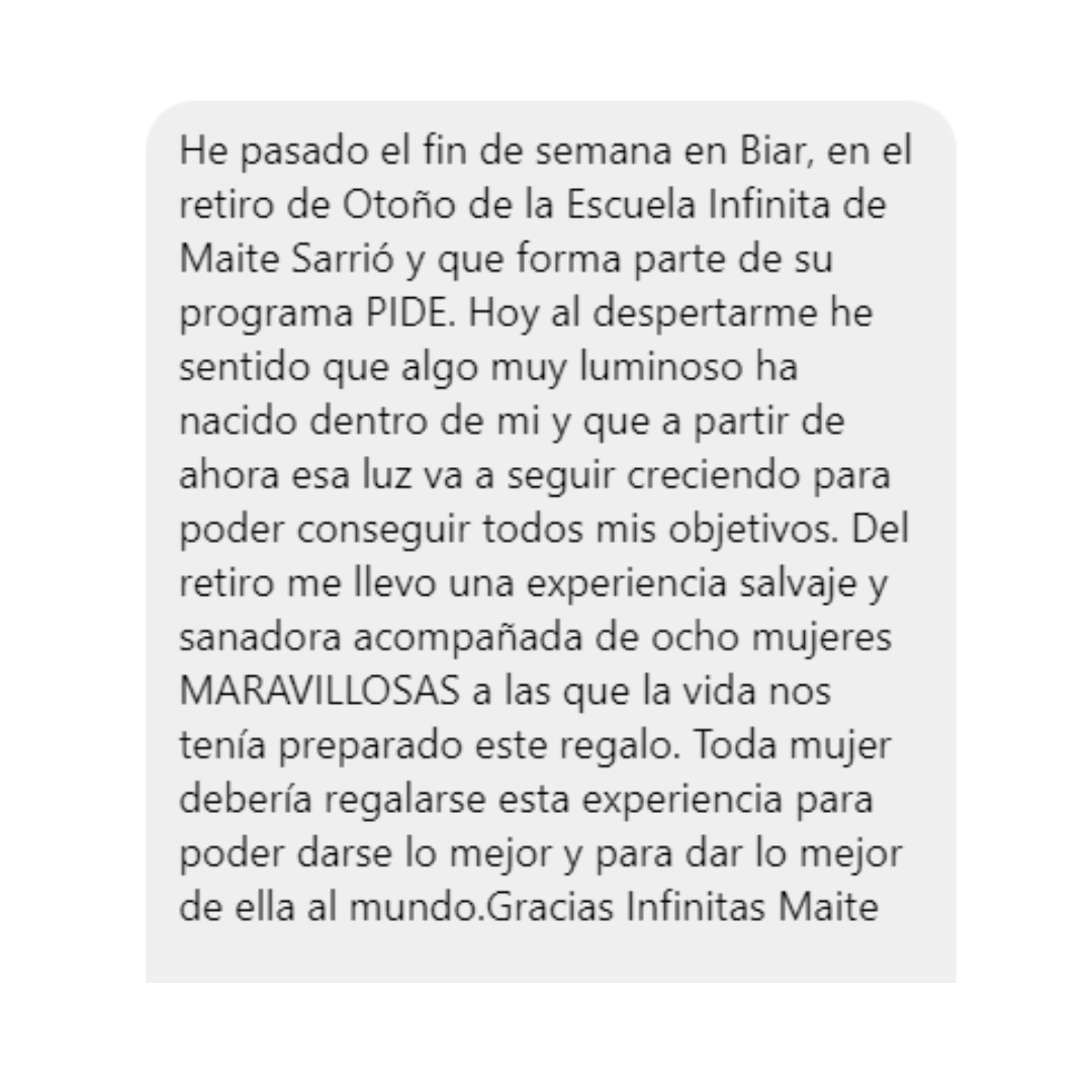 Agenda una breve llamada de 15′ para optar a una de las 5 plazas disponibles del Taller Vivencial Infinita Experience de 3 días
